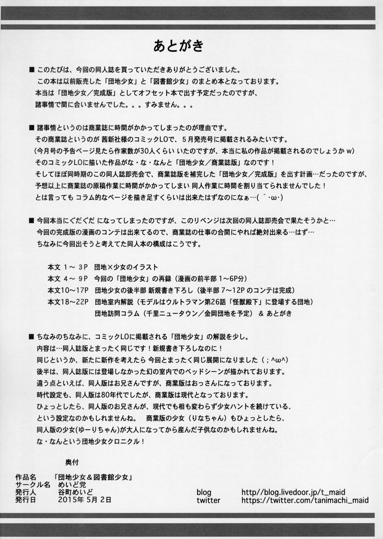 (COMIC1☆9) [めいど党 (谷町めいど)] 団地少女&図書館少女
