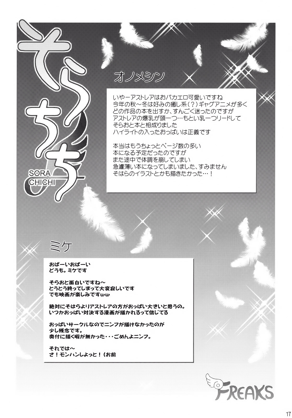 (C79) [フリークス (猫、オノメシン)] そらちち (そらのおとしもの) [英訳]