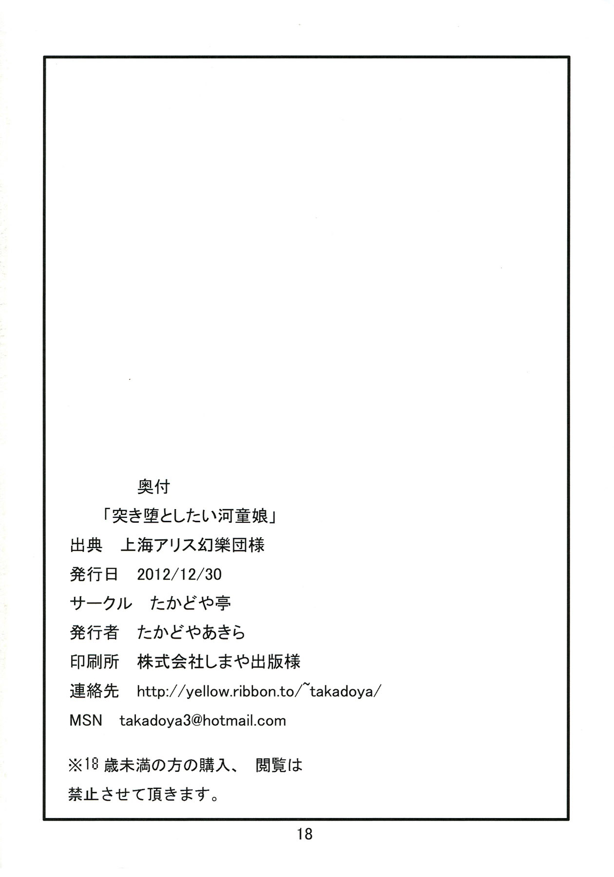 のような他のギャラリー (C83) [たかどや亭 (たかどやあきら)] 突き堕としたい河童娘 (東方Project) [英訳]
